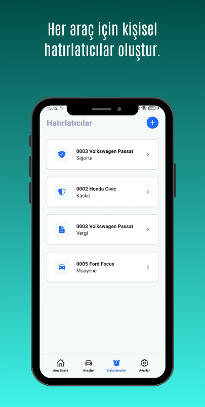 Birden fazla aracınız varsa tarihleri karıştırmak kaçınılmazdır. Aklımda ile tüm araçlarınızın hatırlatmalarını tek ekrandan yönetin.